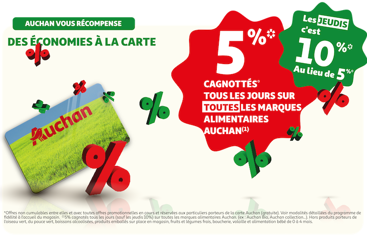 Voir conditions des cagnottes et carte Auchan en magasin.